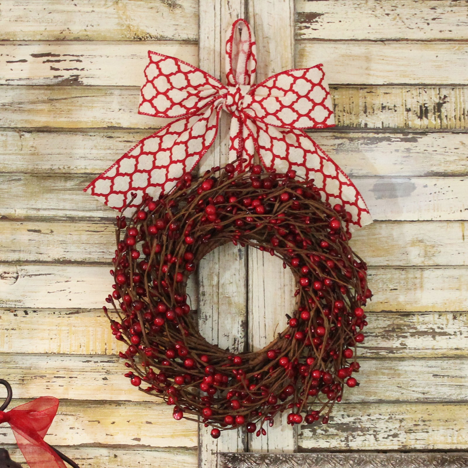 Red & Cream Combo Berry Wreath with Bow